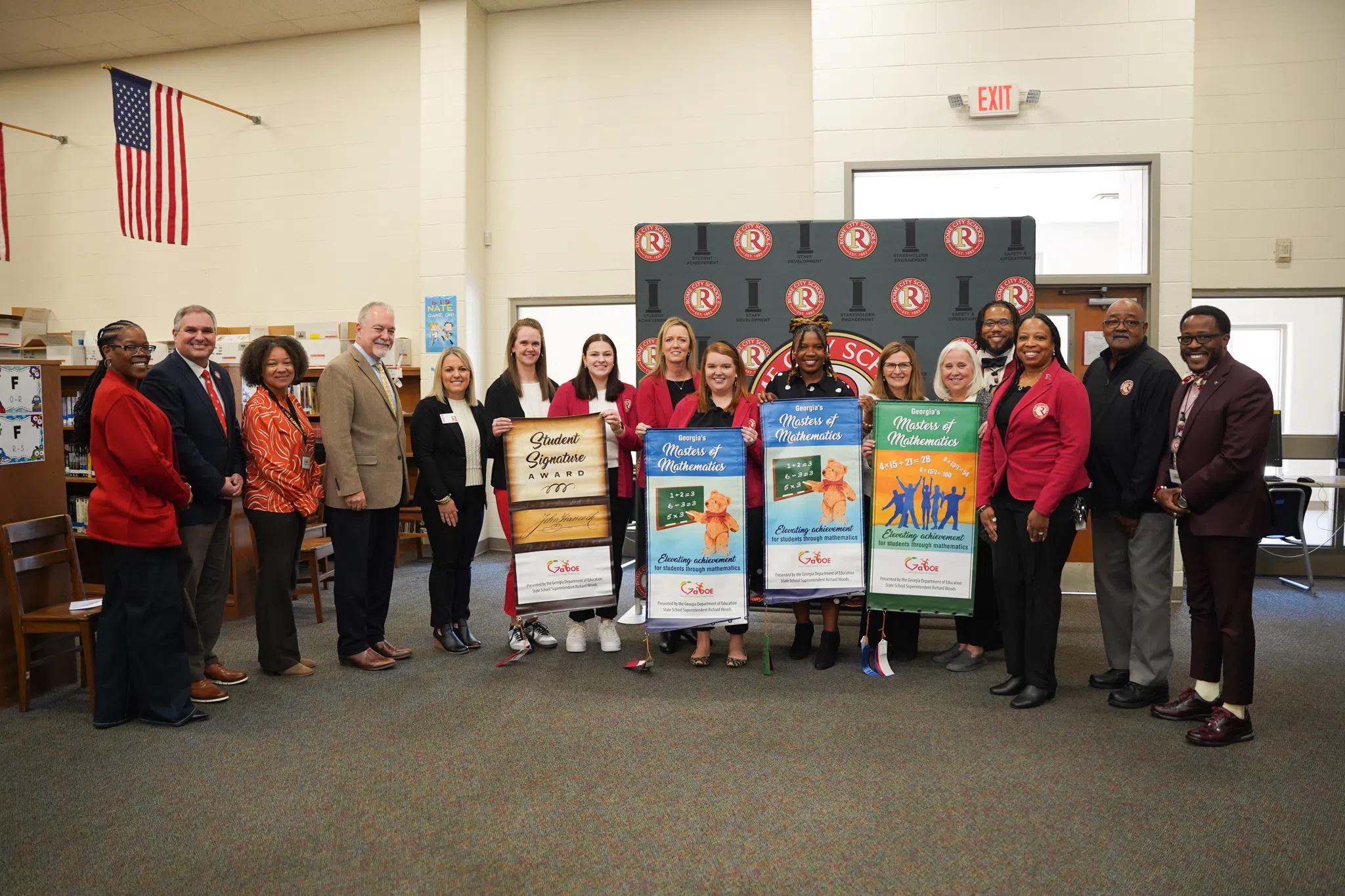 “Giving the banners out themselves is a great thrill to me. It helps to recognize the hard work that’s going on throughout the state, and especially up here in Rome City Schools. We keep adding schools to this list, and that is amazing,” he said. “Of course, for Rome Middle School, what is a real delight is adding ribbons to the bottom. That means continuous progress, continued improvement, and continuous proficiency. It’s just a delight, especially getting to see the teacher with her kids who came over from the high school, as we recognize the work that took place last year.”