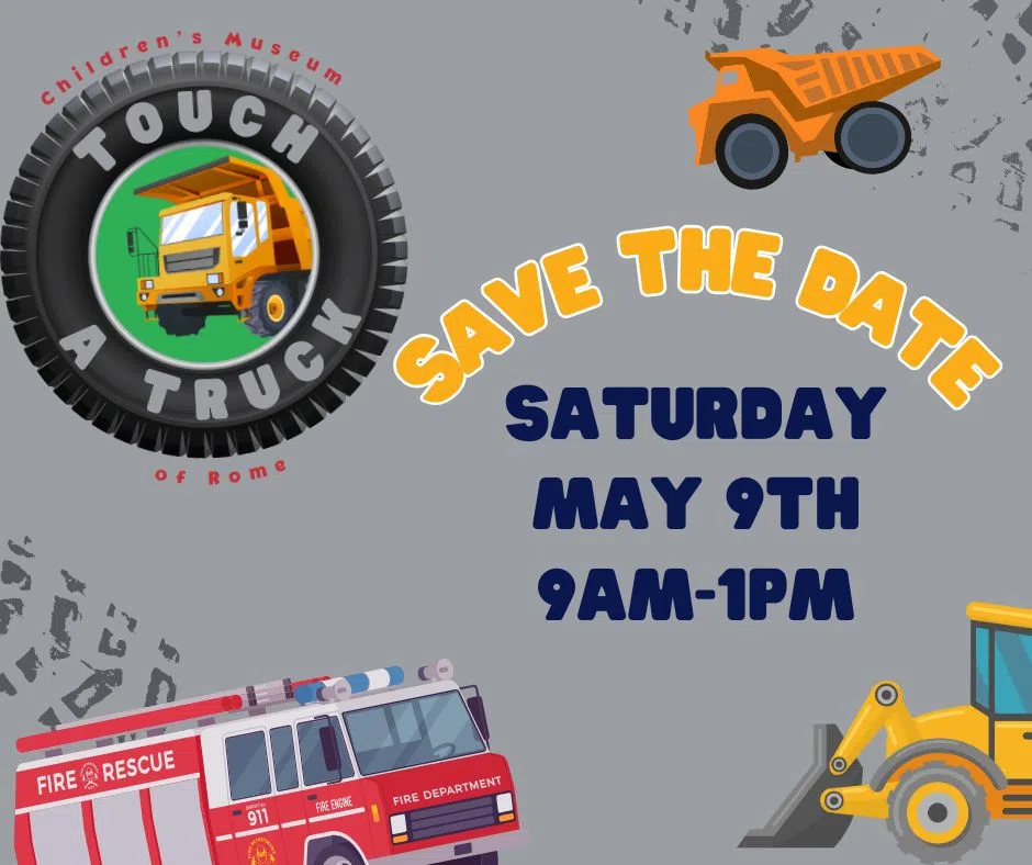 The Children's Museum of Rome wants the community to save the date for May 9th. That is the date of the second annual Touch A Truck event. It will take place from 9 am to 1 pm at the Coosa Valley Fair...